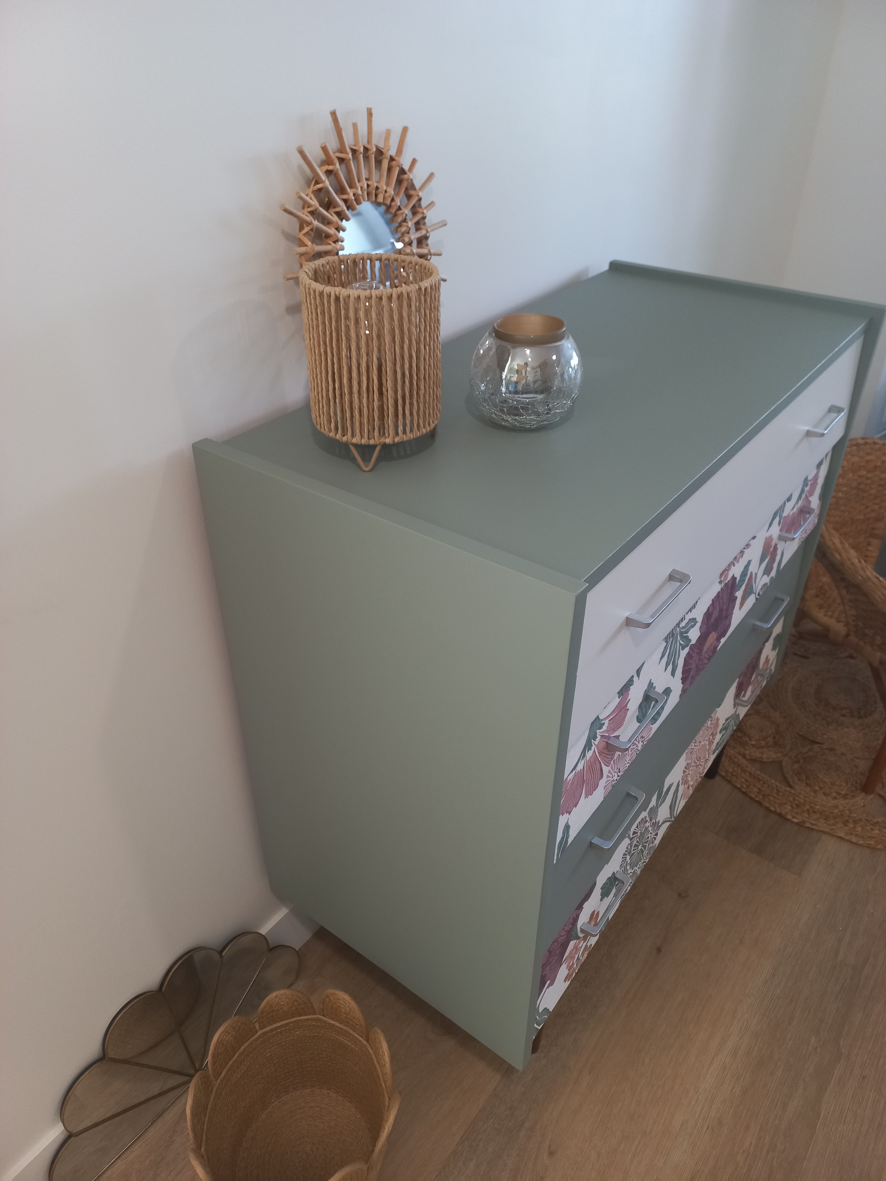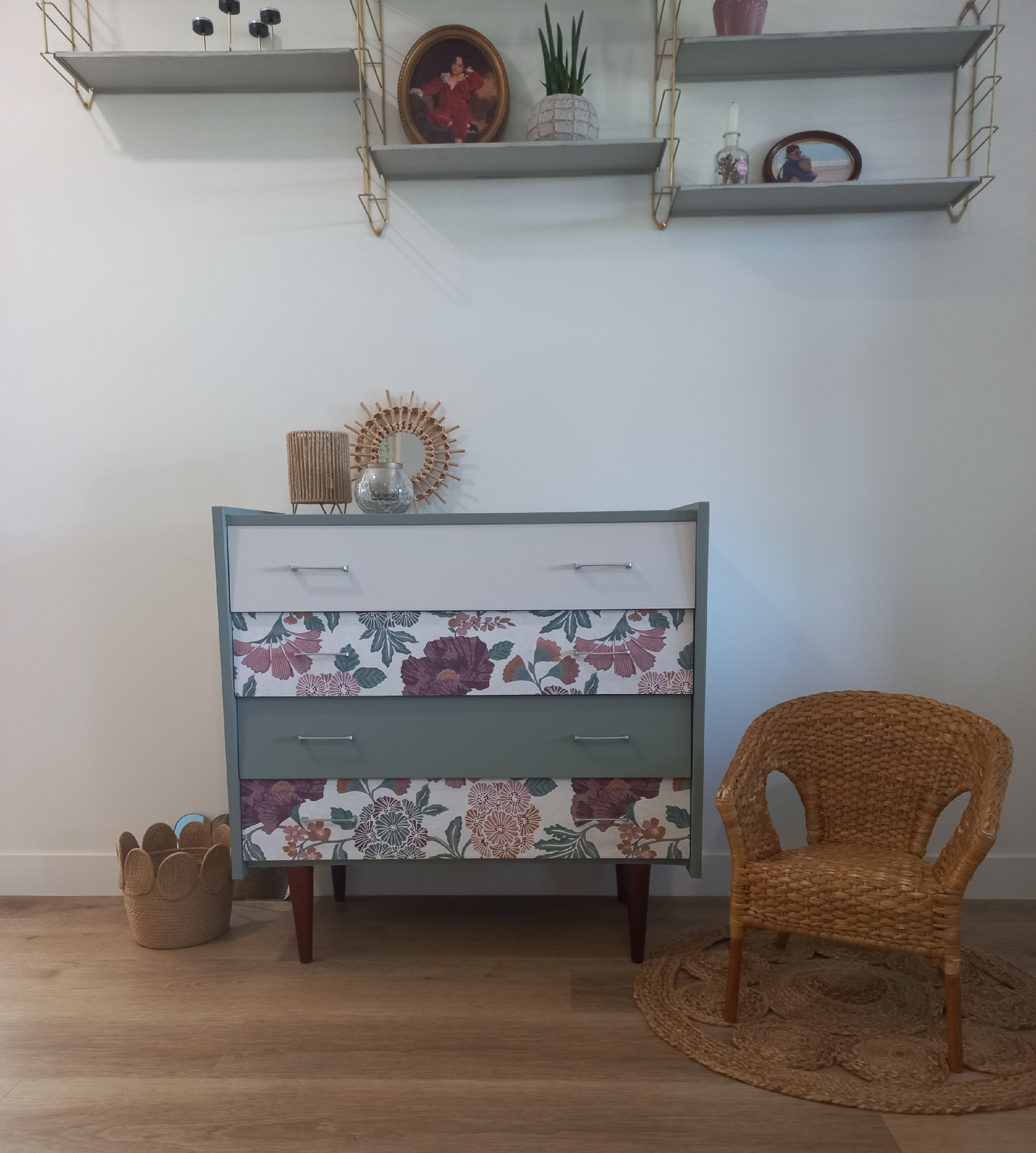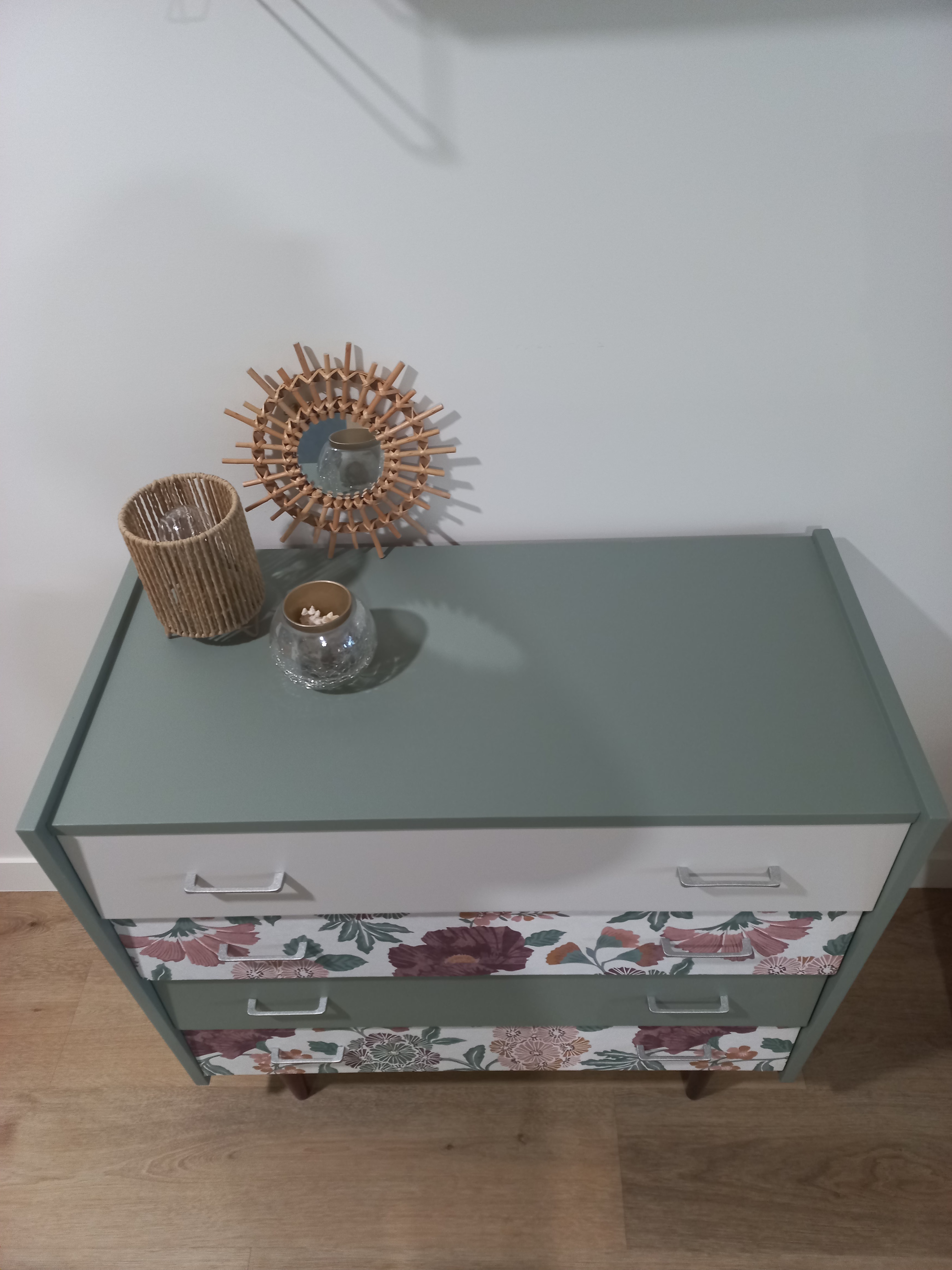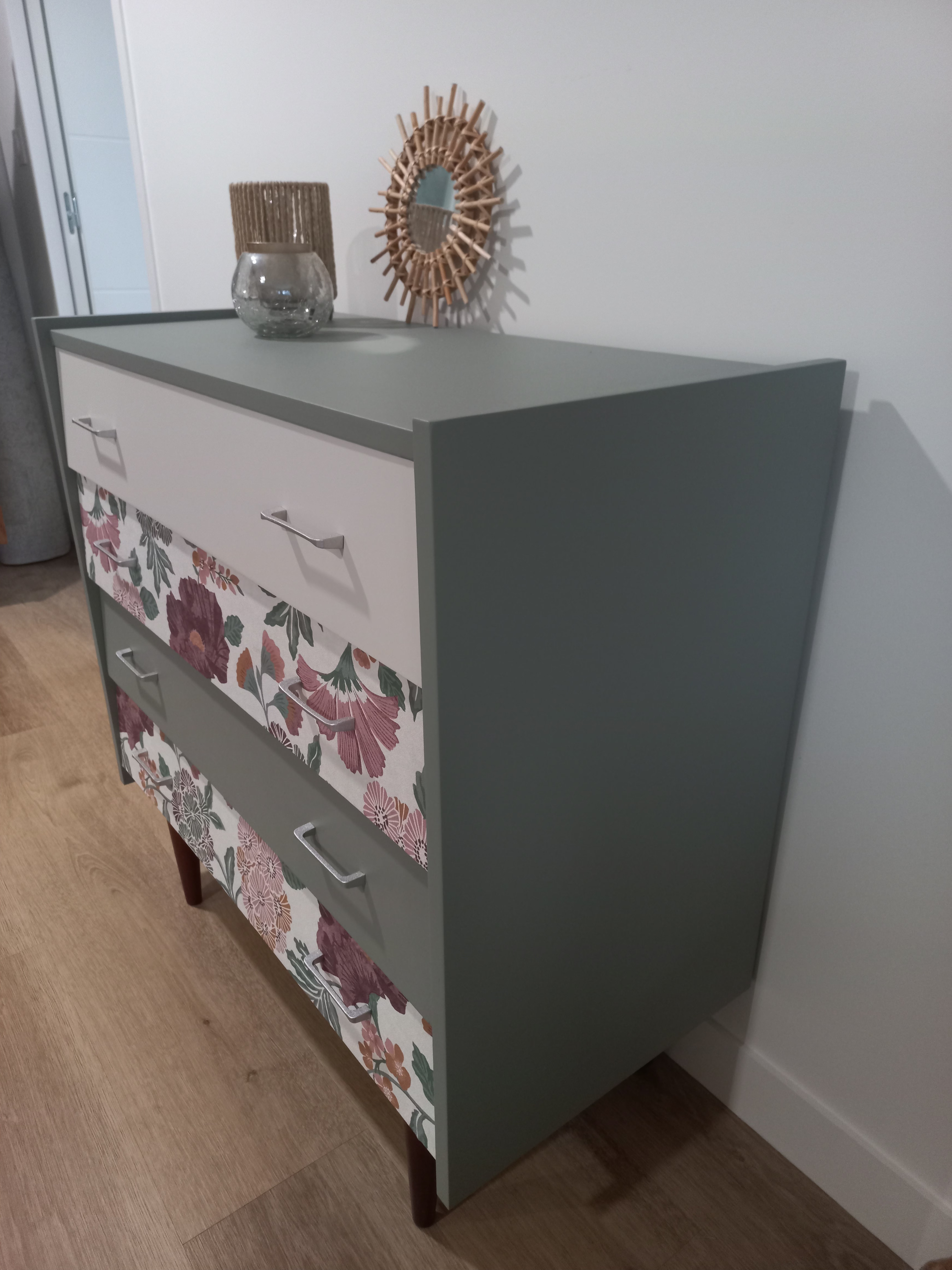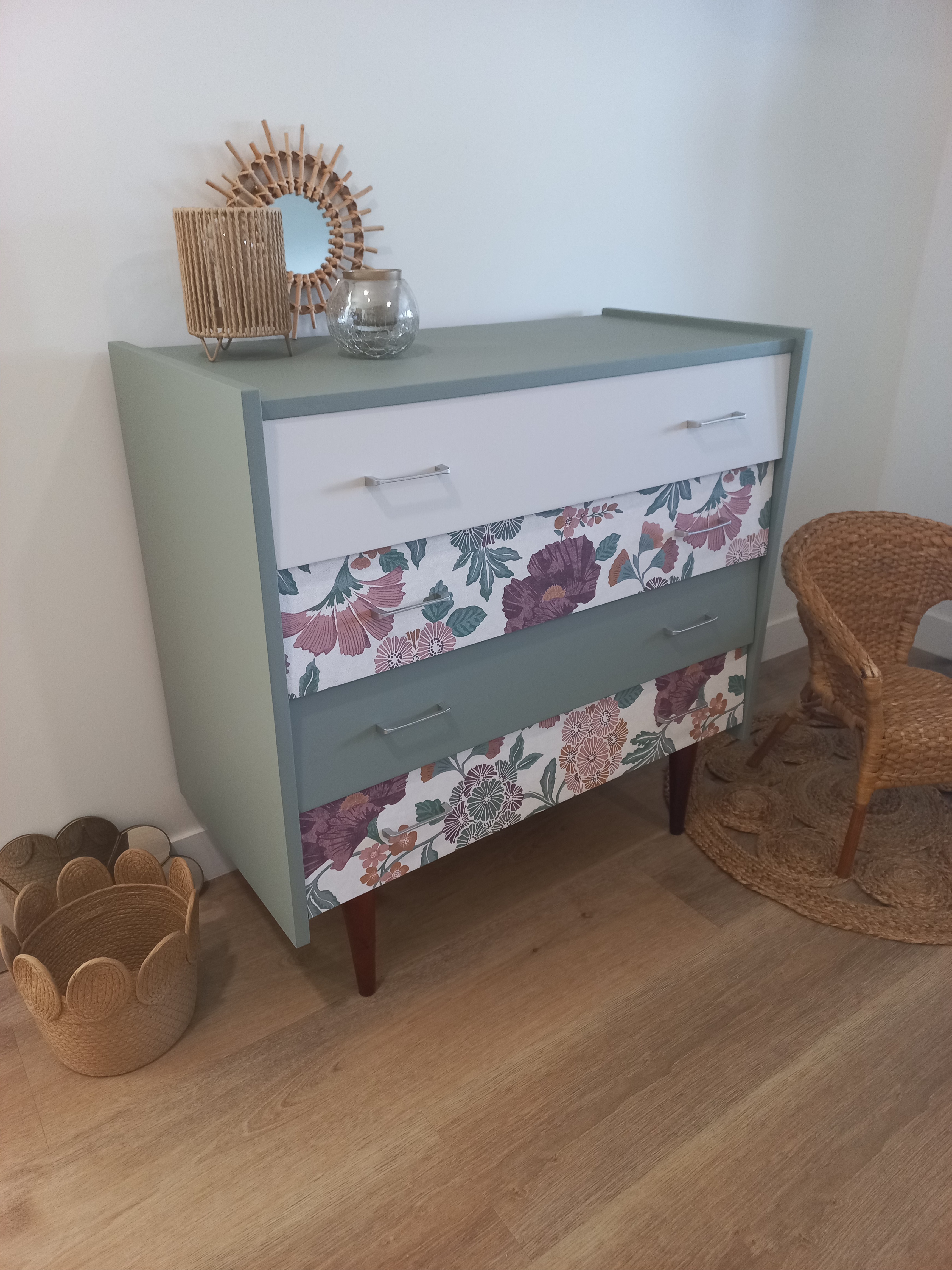 - 2 tiroirs avec papier peint floral, vintage